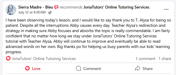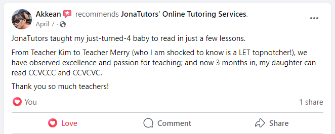 It still depends, as the child’s reading ability is also based on their prior knowledge in letter sounds or interest in learning. We are just here to assist, but based on the feedback from our students’ parents, there has been significant improvement in their children’s reading progress.